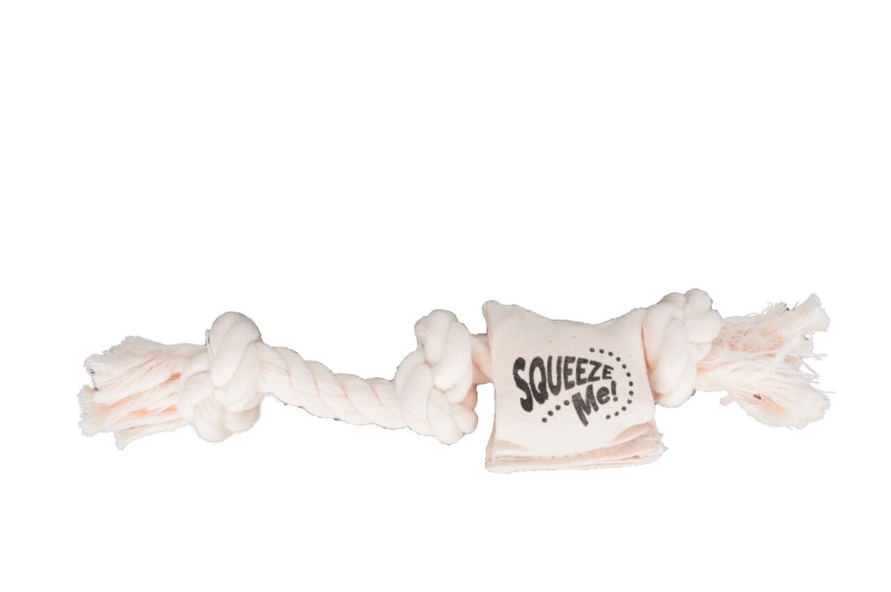 Düğümlü bir ipten ibaret basit bir oyuncak sanmayın! İpin üzerindeki peluş içinde bulunan düdük sayesinde ilgi çekici ve heyecan verici bir oyuncaktır. Pamuktan imal ip sayesinde diş temizleyici görevi görür. Beyaz renkte. 22 cm uzunluk.