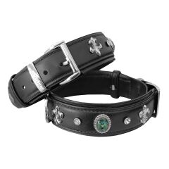 4,5 cm genişliğinde çift kat deri yumuşak kıvamda flotter seri deri köpek boyun tasmasıdır. Boyun çevresi 50-55 cm arası köpekler için uygundur. % 100 orjinal deriden üretilmiştir. Tasma, taşlı ve tavus kuşu tüy taşlı özel taşlarla donatılarak üretilmiş şık bir üründür. Bu tasmada sadece insanların açabileceği kilit sistemi bulunmaktadır. Çok sağlam ve kullanımı kolay olan bu tasma hem şık hemde konforlu bir üründür. Üzerinde gezdirme kayışının takılabileceği metal bir aksam mevcuttur, bu sayede sevimli dostunuzla dışarıda güvenilir şekilde geziler yapabileceksiniz. Asorti olan bu köpek tasması rahatlığı yanında bir okadar sevimli dostunuzun şıklığınıda sağlamaktadır. Ayarlanabilir özelliği sayesinde dostunuzun boynuna uygun hale getirilebilirsiniz. Taşlı orjinal deridir.